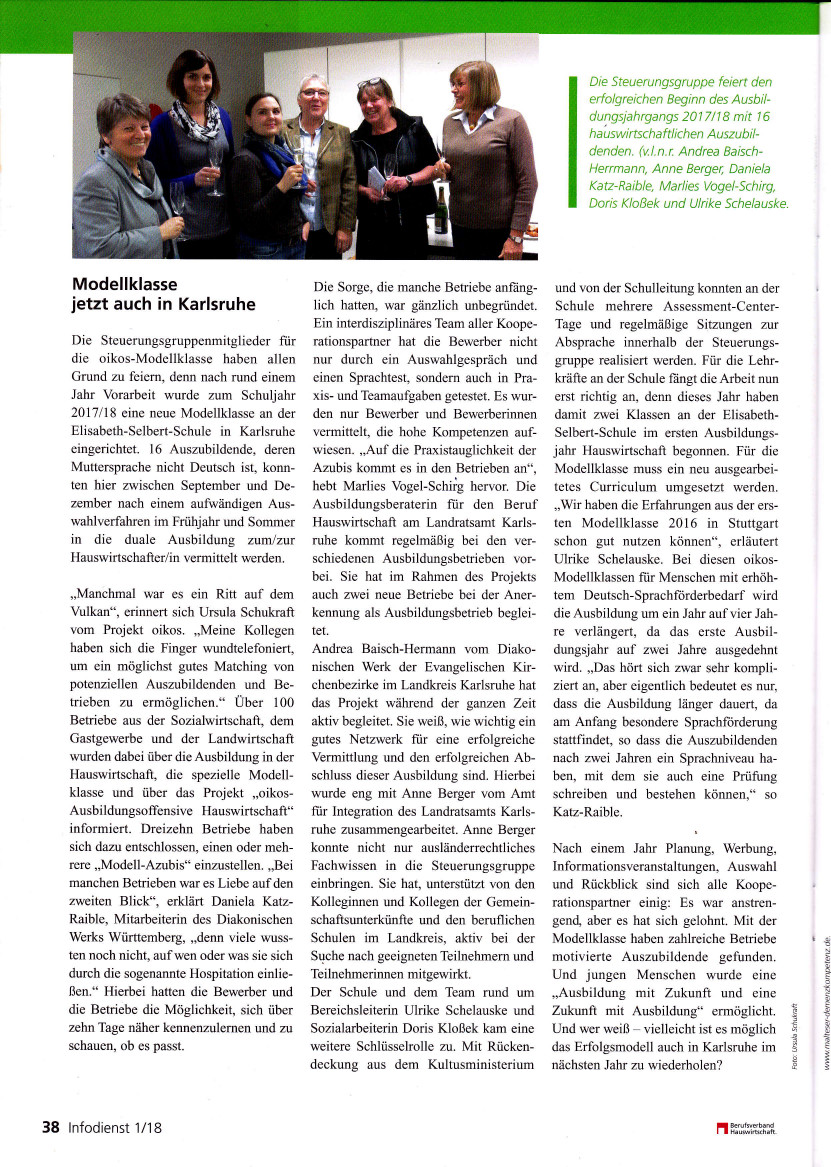 Infodienst Berufsverband Hauswirtschaft 01/2018 01/2018 Infodienst Berufsverband Hauswirtschaft