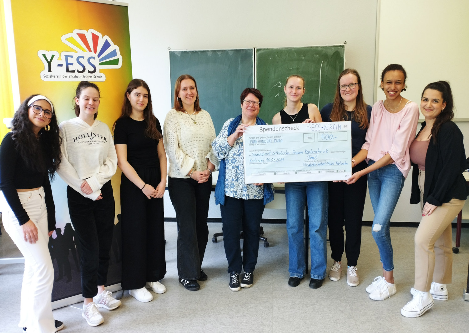Am 16.05.24 besuchte uns Frau Popp vom Sozialverein katholischer Frauen, der von einigen Schülerinnen bereits im März im Zuge der Aktionswoche „Gegen Gewalt an Frauen“ besucht wurde. Frau Popp berichtete unseren Schülerinnen von dem traurigen Phänomen häuslicher Gewalt im Alltag vieler Frauen, der Beratungstätigkeit des Vereins um dem Leben der Frauen im Frauenhaus. Voller Freude konnten die Mitglieder des Schülervorstandes wieder 500 Euro an den Verein übergeben, womit notwendige Anschaffungen für die Frauen und Kinder im Frauenhaus finanziert werden sollen.